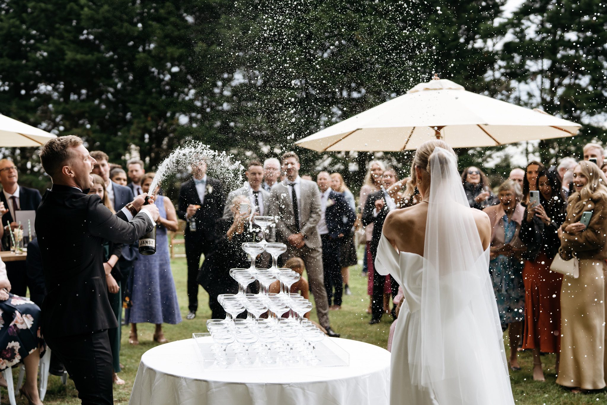 The weather was meant to be terrible, but thanks to an old wives’ tale and a couple of sausages buried in the ground, we ended up with only the lightest drizzle and a whole lot of luck. It didn’t affect a thing — everyone enjoyed lawn games, drinks outside the Arawata Hall, and then we were treated to the most incredible sunset. Some lovely neighbours even let us use their paddock for photos, which was such a gift.